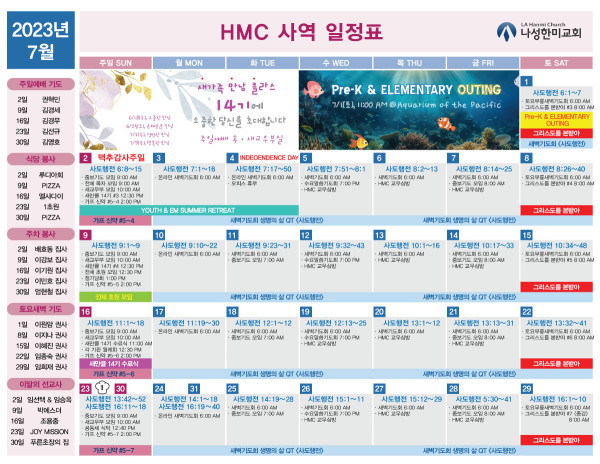 2023년 7월 사역일정표 페이지 정보 작성자 나성한미교회 댓글 0건 조회 5,148회 작성일 23-06-24 09:08 목록 본문 이전글2023년도 7월 동역 선교지 & 선교사 기도제목 23.06.28 다음글Pre-K & ELEMENTARY OUTING 23.06.23 댓글 0 댓글목록 등록된 댓글이 없습니다. 목록