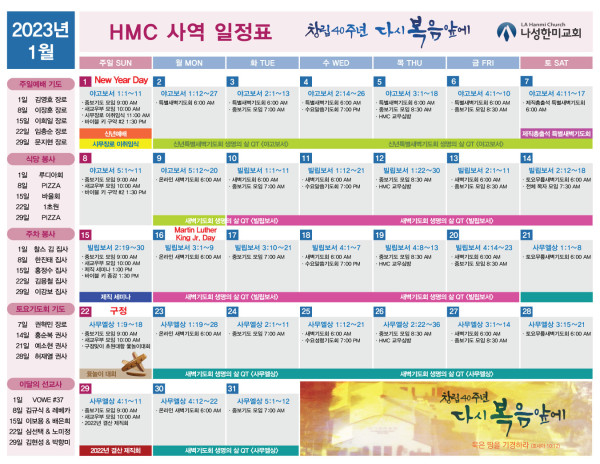 2023년 1월 사역일정표 페이지 정보 작성자 나성한미교회 댓글 0건 조회 5,340회 작성일 22-12-30 13:14 목록 본문 이전글기독교 고전 독서반 23.01.04 다음글<신년특새> 야고보서 새벽강해 "믿는 만큼 행동한다" 22.12.30 댓글 0 댓글목록 등록된 댓글이 없습니다. 목록