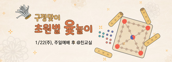 구정맞이 초원별 윷놀이 페이지 정보 작성자 나성한미교회 댓글 0건 조회 4,627회 작성일 23-01-04 14:57 목록 본문 구정맞이 초원별 윷놀이 1/22(주), 주일예배 후 @친교실 이전글제직 세미나 23.01.04 다음글초원모임 23.01.04 댓글 0 댓글목록 등록된 댓글이 없습니다. 목록