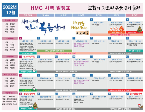 12월 사역일정표 페이지 정보 작성자 나성한미교회 댓글 0건 조회 4,592회 작성일 22-11-26 09:56 목록 본문 이전글<성탄주일예배> 세상에 빛으로 오신 예수 그리스도 22.12.03 다음글2023년 허입 선교사 추천 및 신청 22.11.22 댓글 0 댓글목록 등록된 댓글이 없습니다. 목록