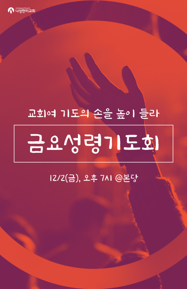 12월 금요성령기도회 페이지 정보 작성자 나성한미교회 댓글 0건 조회 4,555회 작성일 22-12-03 12:04 목록 본문 월삭 금요성령기도회11/4(금), 오후 7:00 @본당 (매달 첫째주 금요일) 이전글목자 하반기 결산 모임 22.12.03 다음글<송구영신예배> 보냄의 고백 & 출발의 예배 22.12.03 댓글 0 댓글목록 등록된 댓글이 없습니다. 목록