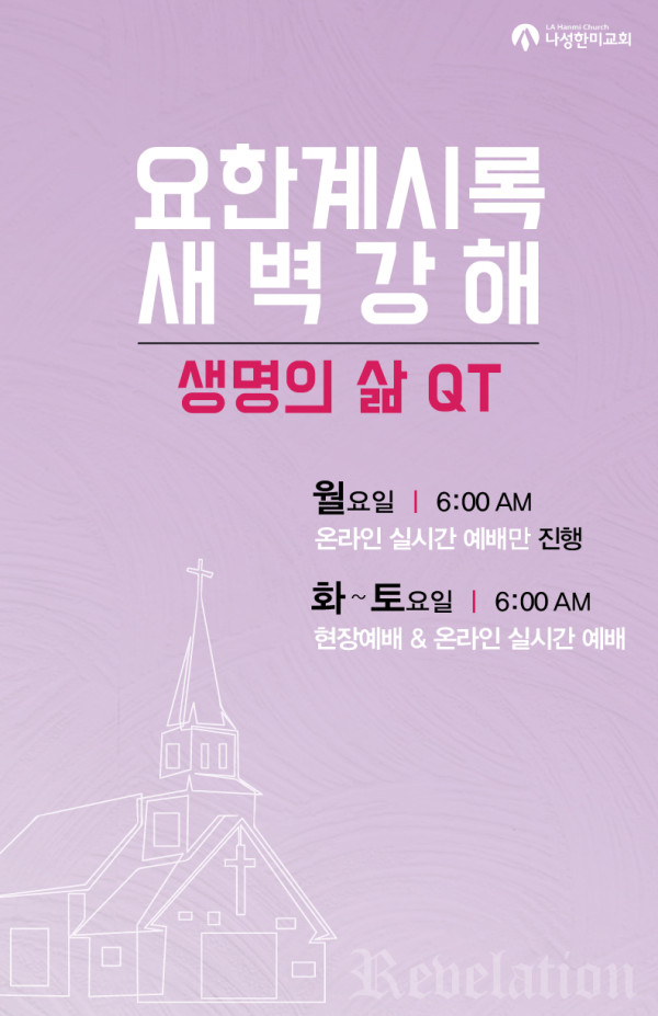 요한계시록 새벽강해 -생명의 삶 QT 페이지 정보 작성자 나성한미교회 댓글 0건 조회 2,650회 작성일 24-11-09 09:03 목록 본문 요한계시록 새벽강해 -생명의 삶 QT 이전글Love EL Monte 24.11.09 다음글시편 새벽강해 -생명의 삶 QT 24.11.09 댓글 0 댓글목록 등록된 댓글이 없습니다. 목록