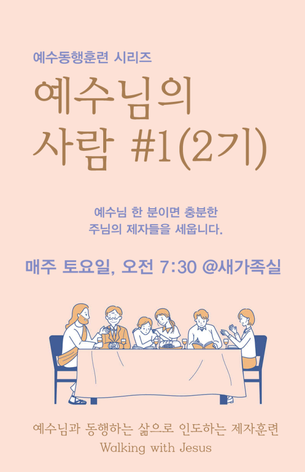 예수동행훈련 시리즈 / 예수님의 사람 #1 (2기) 페이지 정보 작성자 나성한미교회 댓글 0건 조회 3,312회 작성일 24-08-14 13:15 목록 본문 예수동행훈련 시리즈예수님의 사람 #1 (2기)매주 토요일 오전 7:30 @새가족실 이전글야곱의 축복 [김인식 목사] 초청 찬양 콘서트 24.08.17 다음글EDUCATION MINISTRY OUTING 24.08.14 댓글 0 댓글목록 등록된 댓글이 없습니다. 목록