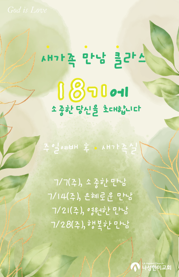 새가족 만남 클라스 18기에 소중한 당신을 초대합니다.