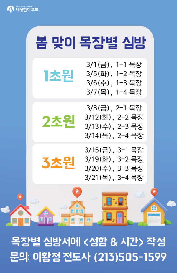 봄 맞이 목장별 심방 페이지 정보 작성자 나성한미교회 댓글 0건 조회 4,317회 작성일 24-02-28 08:22 목록 본문 봄 맞이 목장별 심방 이전글3/23(토), 봄 맞이 대청소 24.02.28 다음글새가족 만남 클라스 새만클 16기 24.02.28 댓글 0 댓글목록 등록된 댓글이 없습니다. 목록