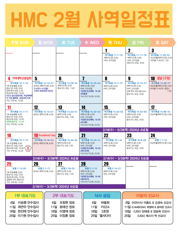 2024년 2월 사역일정표 페이지 정보 작성자 나성한미교회 댓글 0건 조회 3,996회 작성일 24-02-09 10:04 목록 본문 2024년 2월 사역일정표 이전글2024년도 2월 동역 선교지 & 선교사 기도제목 24.02.09 다음글THE PRAYER 더 기도회 24.02.08 댓글 0 댓글목록 등록된 댓글이 없습니다. 목록