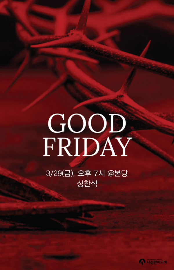 3/29(금), 성금요예배 페이지 정보 작성자 나성한미교회 댓글 0건 조회 5,291회 작성일 24-03-13 15:40 목록 본문 성금요예배 3/29(금), 오후 7시 @본당<성찬식> 주님의 몸과 피를 나누며 & 주님을 기념합니다. 이전글3/31(주), VIP 및 온가족초청 부활절 연합예배 24.03.20 다음글가스펠 프로젝트 신약 6 24.03.13 댓글 0 댓글목록 등록된 댓글이 없습니다. 목록