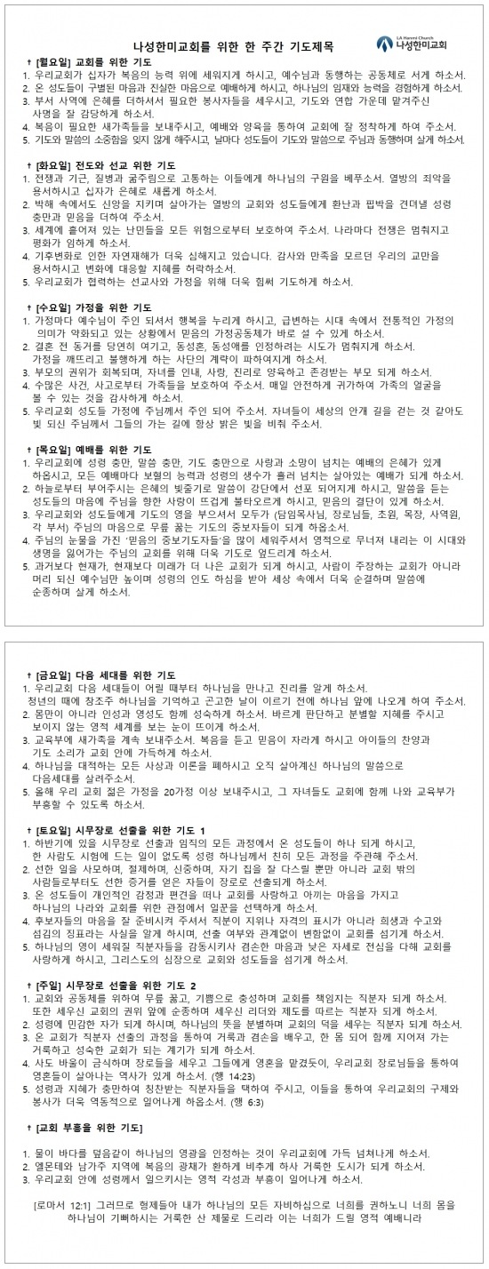 나성한미교회를 위한 한 주간 기도제목 페이지 정보 작성자 나성한미교회 댓글 0건 조회 5,453회 작성일 24-05-18 19:32 목록 본문 나성한미교회를 위한 한 주간 기도제목 이전글2024년 6월 사역일정표 24.05.28 다음글Soli Deo Gloria 찬양대 세미나 24.05.11 댓글 0 댓글목록 등록된 댓글이 없습니다. 목록