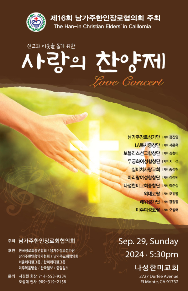 선교와 이웃을 돕기 위한 "사랑의 찬양제" 페이지 정보 작성자 나성한미교회 댓글 0건 조회 3,189회 작성일 24-09-21 07:53 목록 본문 선교와 이웃을 돕기 위한 "사랑의 찬양제"9/29 (주일) 5:30PM 나성한미교회 이전글나성한미교회 전교인 수련회 "하나됨의 능력을 보라" 24.09.21 다음글호세아서 새벽강해 [생명의 삶 QT] 24.09.21 댓글 0 댓글목록 등록된 댓글이 없습니다. 목록