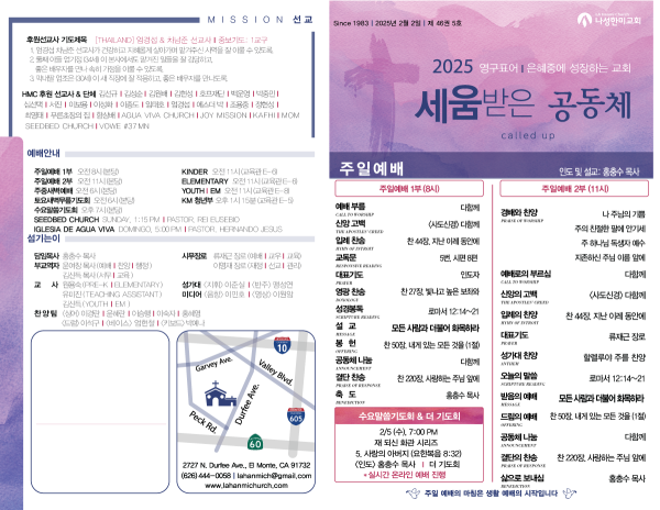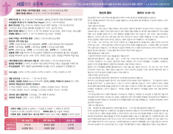 2025년 2월 2일 페이지 정보 작성자 나성한미교회 댓글 0건 조회 1,420회 작성일 25-02-01 14:14 목록 본문 2025년 2월 2일 이전글2025년 2월 9일 25.02.08 다음글2025년 1월 26일 25.01.25 댓글 0 댓글목록 등록된 댓글이 없습니다. 목록
