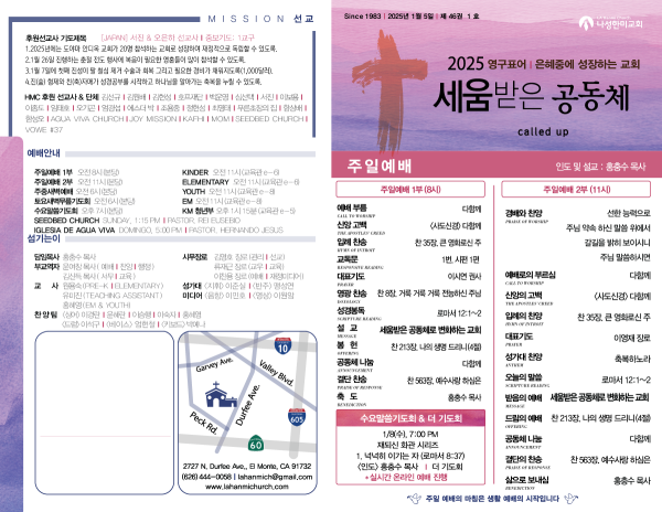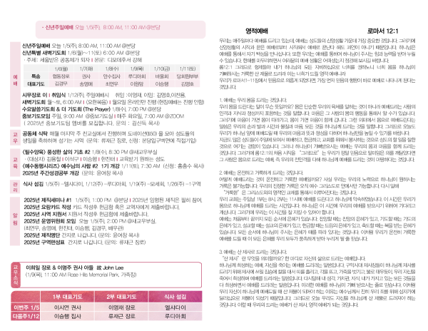 2025년 1월 5일 페이지 정보 작성자 나성한미교회 댓글 0건 조회 1,483회 작성일 25-01-04 17:50 목록 본문 2025년 1월 5일 이전글2025년 1월 12일 25.01.11 다음글2024년 12월 29일 24.12.28 댓글 0 댓글목록 등록된 댓글이 없습니다. 목록