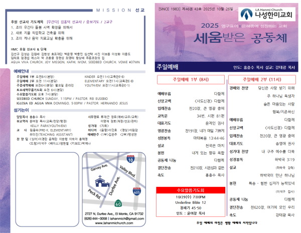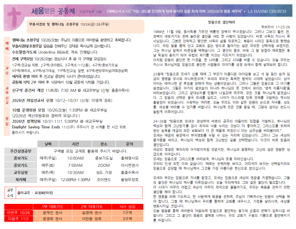 20251026 주보 페이지 정보 작성자 나성한미교회 댓글 0건 조회 22회 작성일 25-10-29 08:29 목록 본문 20251026 주보 다음글20251019 주보 25.10.19 댓글 0 댓글목록 등록된 댓글이 없습니다. 목록