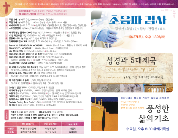 2024년 10월 27일 페이지 정보 작성자 나성한미교회 댓글 0건 조회 1,919회 작성일 24-10-26 14:56 목록 본문 2024년 10월 27일 이전글2024년 11월 3일 24.11.02 다음글2024년 10월 20일 24.10.21 댓글 0 댓글목록 등록된 댓글이 없습니다. 목록