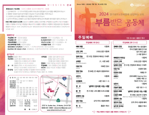 2024년 7월 7일 페이지 정보 작성자 나성한미교회 댓글 0건 조회 2,042회 작성일 24-07-06 14:16 목록 본문 2024년 7월 7일 이전글2024년 7월 14일 24.07.15 다음글2024년 6월 30일 24.07.02 댓글 0 댓글목록 등록된 댓글이 없습니다. 목록
