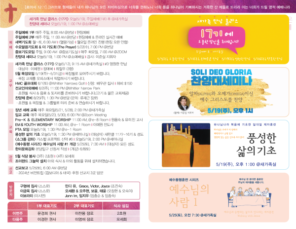 2024년 5월 19일 페이지 정보 작성자 나성한미교회 댓글 0건 조회 2,075회 작성일 24-05-18 14:33 목록 본문 이전글2024년 5월 26일 24.05.25 다음글2024년 5월 12일 24.05.11 댓글 0 댓글목록 등록된 댓글이 없습니다. 목록