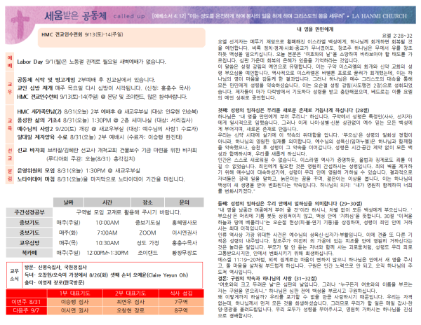 20250831 주보 페이지 정보 작성자 나성한미교회 댓글 0건 조회 312회 작성일 25-08-30 06:49 목록 본문 20250831 주보 이전글20250907 주보 25.09.06 다음글20250824 주보 25.08.23 댓글 0 댓글목록 등록된 댓글이 없습니다. 목록