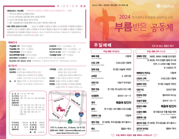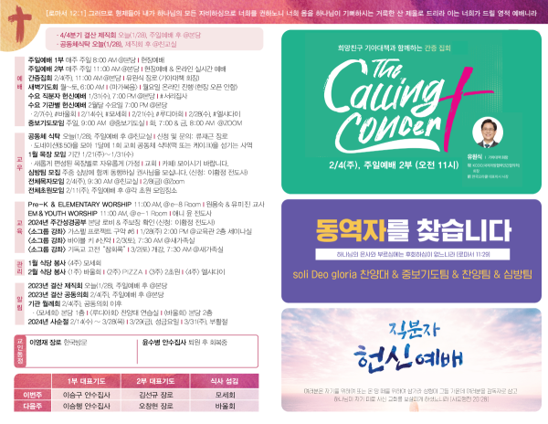 2024년 1월 28일 페이지 정보 작성자 나성한미교회 댓글 0건 조회 2,108회 작성일 24-01-28 17:24 목록 본문 2024년 1월 28일 이전글2024년 2월 4일 24.02.07 다음글2024년 1월 21일 24.01.20 댓글 0 댓글목록 등록된 댓글이 없습니다. 목록