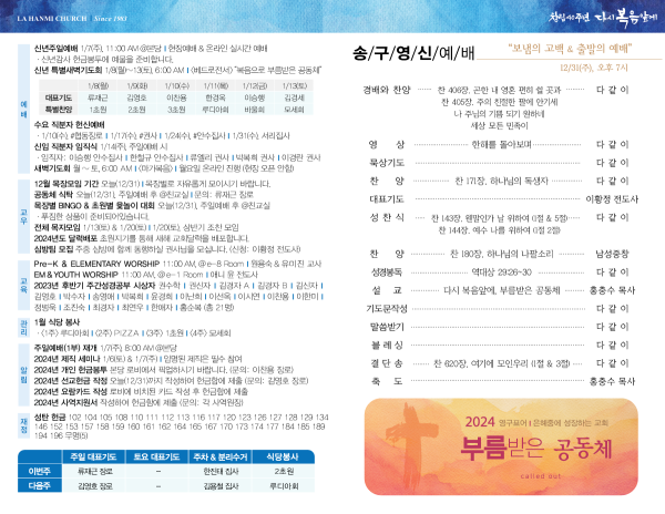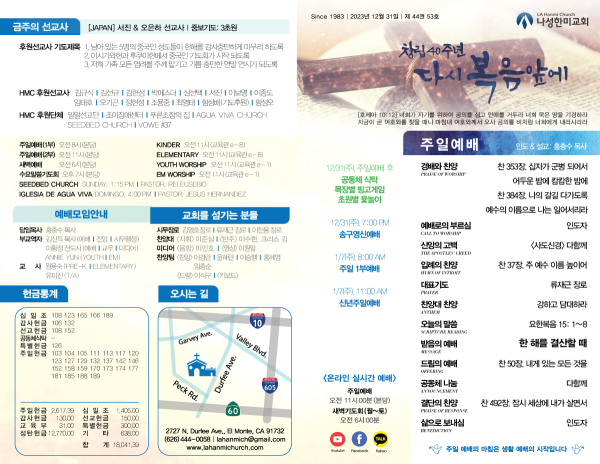 2023년 12월 31일 페이지 정보 작성자 나성한미교회 댓글 0건 조회 2,949회 작성일 23-12-30 15:08 목록 본문 이전글2024년 1월 7일 24.01.06 다음글2023년 12월 24일 23.12.23 댓글 0 댓글목록 등록된 댓글이 없습니다. 목록