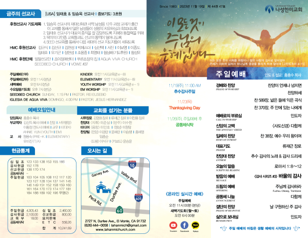 2023년 11월 19일 페이지 정보 작성자 나성한미교회 댓글 0건 조회 2,983회 작성일 23-11-18 17:47 목록 본문 이전글2023년 11월 26일 23.11.29 다음글2023년 11월 12일 23.11.11 댓글 0 댓글목록 등록된 댓글이 없습니다. 목록