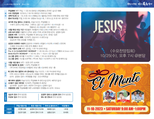 2023년 10월 22일 페이지 정보 작성자 나성한미교회 댓글 0건 조회 2,914회 작성일 23-10-21 12:59 목록 본문 이전글2023년 10월 29일 23.11.02 다음글2023년 10월 15일 23.10.14 댓글 0 댓글목록 등록된 댓글이 없습니다. 목록