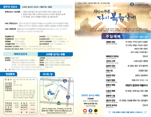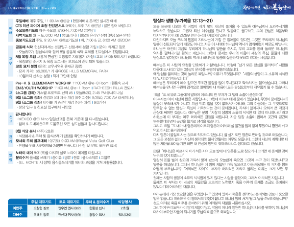 2023년 8월 27일 페이지 정보 작성자 나성한미교회 댓글 0건 조회 2,981회 작성일 23-08-26 13:59 목록 본문 이전글2023년 9월 3일 23.09.02 다음글2023년 8월 20일 23.08.19 댓글 0 댓글목록 등록된 댓글이 없습니다. 목록