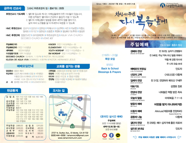 2023년 7월 30일 페이지 정보 작성자 나성한미교회 댓글 0건 조회 2,895회 작성일 23-07-29 11:33 목록 본문 이전글2023년 8월 6일 23.08.13 다음글2023년 7월 23일 23.07.23 댓글 0 댓글목록 등록된 댓글이 없습니다. 목록