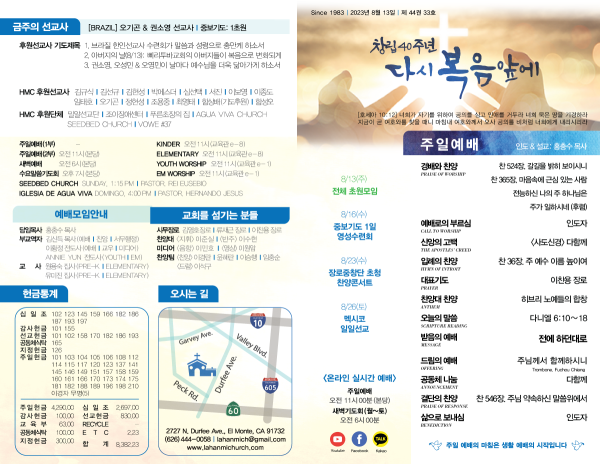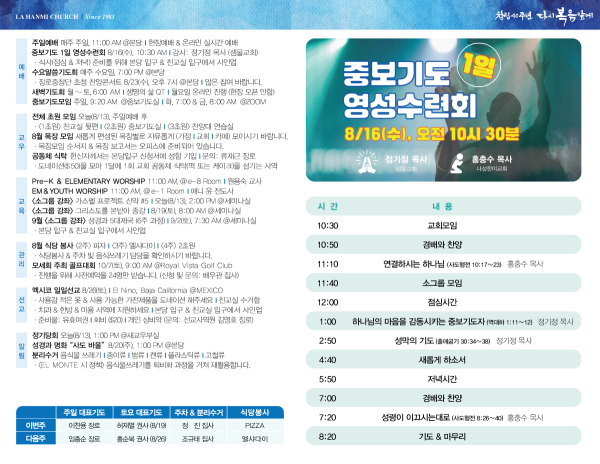 2023년 8월 13일 페이지 정보 작성자 나성한미교회 댓글 0건 조회 2,918회 작성일 23-08-13 07:56 목록 본문 이전글2023년 8월 20일 23.08.19 다음글2023년 8월 6일 23.08.13 댓글 0 댓글목록 등록된 댓글이 없습니다. 목록