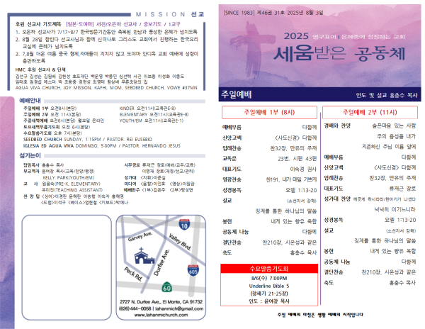 20250803 주보 페이지 정보 작성자 나성한미교회 댓글 0건 조회 533회 작성일 25-08-03 13:49 목록 본문 20250803 주보 이전글20250810 주보 25.08.11 다음글20250803 주보 25.08.03 댓글 0 댓글목록 등록된 댓글이 없습니다. 목록