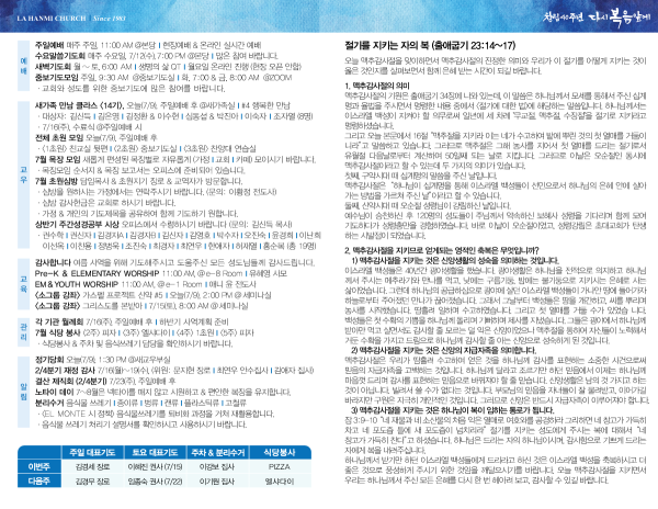 2023년 7월 9일 페이지 정보 작성자 나성한미교회 댓글 0건 조회 2,915회 작성일 23-07-08 12:23 목록 본문 이전글2023년 7월 16일 23.07.15 다음글2023년 7월 2일 23.07.01 댓글 0 댓글목록 등록된 댓글이 없습니다. 목록