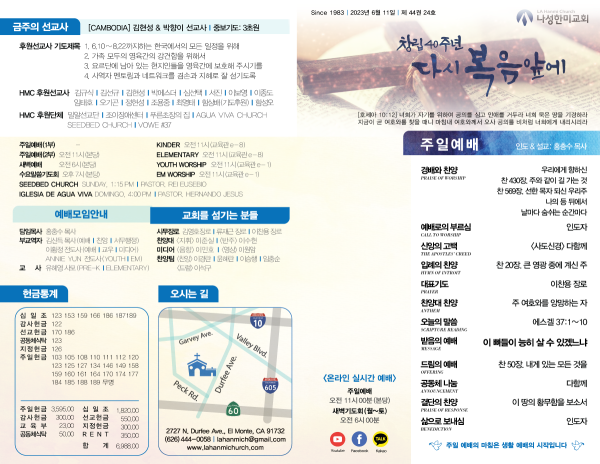 2023년 6월 11일 페이지 정보 작성자 나성한미교회 댓글 0건 조회 2,930회 작성일 23-06-10 12:39 목록 본문 이전글2023년 6월 18일 23.06.17 다음글2023년 6월 4일 23.06.06 댓글 0 댓글목록 등록된 댓글이 없습니다. 목록
