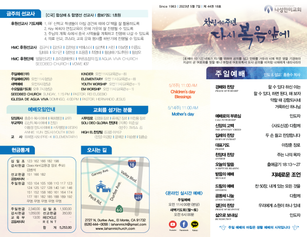 2023년 5월 7일 페이지 정보 작성자 나성한미교회 댓글 0건 조회 3,000회 작성일 23-05-09 04:40 목록 본문 이전글2023년 5월 14일 23.05.13 다음글2023년 4월 30일 23.04.29 댓글 0 댓글목록 등록된 댓글이 없습니다. 목록