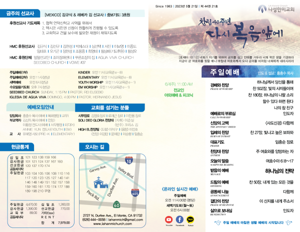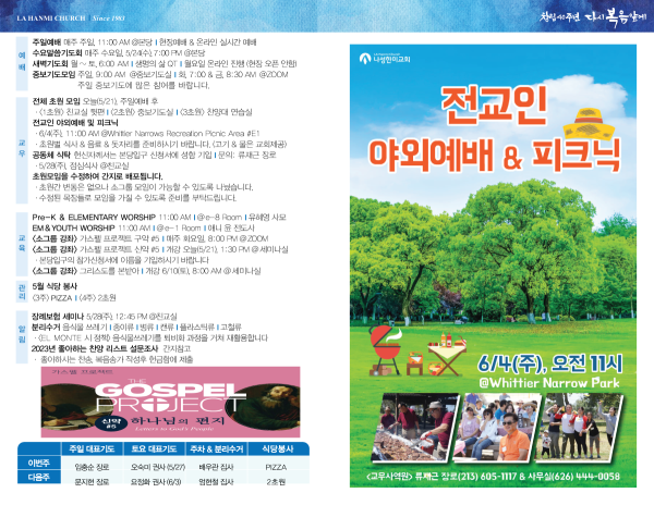 2023년 5월 21일 페이지 정보 작성자 나성한미교회 댓글 0건 조회 2,946회 작성일 23-05-20 14:39 목록 본문 2023년 5월 21일 이전글2023년 5월 28일 23.05.28 다음글2023년 5월 14일 23.05.13 댓글 0 댓글목록 등록된 댓글이 없습니다. 목록