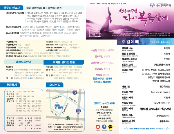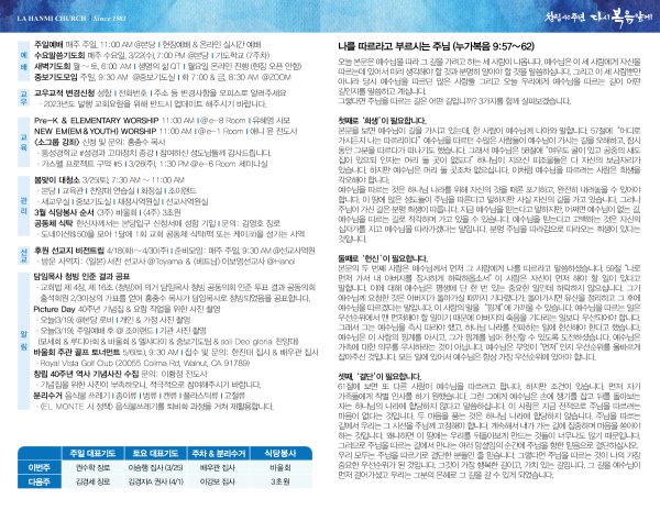 2023년 3월 19일 페이지 정보 작성자 나성한미교회 댓글 0건 조회 3,098회 작성일 23-03-18 07:55 목록 본문 이전글2023년 3월 26일 23.03.25 다음글2023년 3월 12일 23.03.16 댓글 0 댓글목록 등록된 댓글이 없습니다. 목록