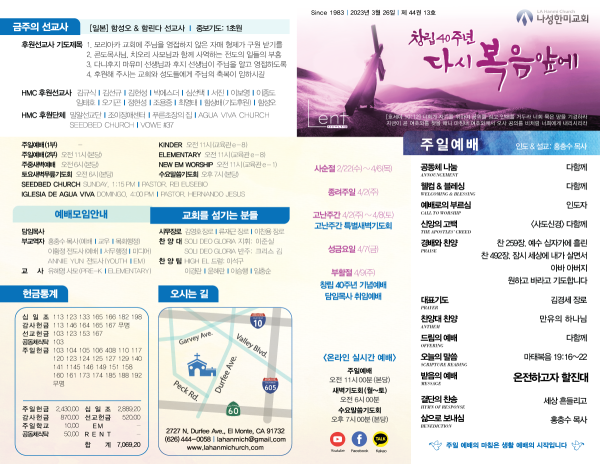 2023년 3월 26일 페이지 정보 작성자 나성한미교회 댓글 0건 조회 3,099회 작성일 23-03-25 15:48 목록 본문 이전글2023년 4월 2일 23.04.01 다음글2023년 3월 19일 23.03.18 댓글 0 댓글목록 등록된 댓글이 없습니다. 목록