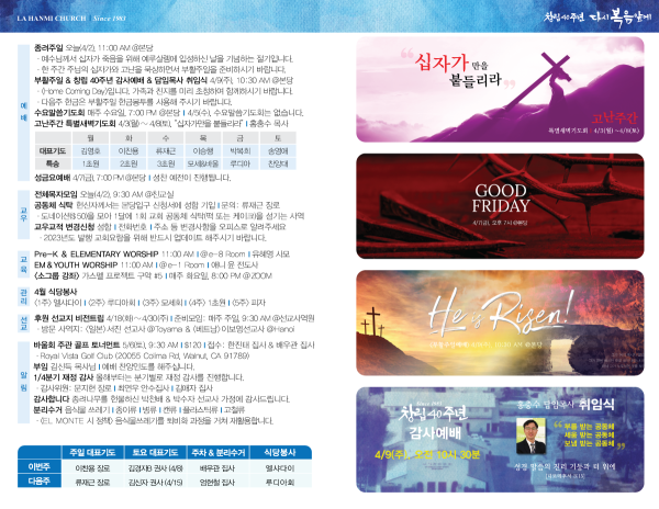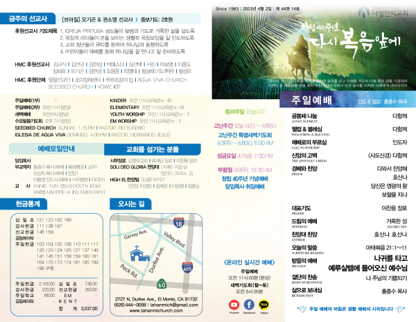 2023년 4월 2일 페이지 정보 작성자 나성한미교회 댓글 0건 조회 2,986회 작성일 23-04-01 14:22 목록 본문 이전글2023년 4월 9일 23.04.09 다음글2023년 3월 26일 23.03.25 댓글 0 댓글목록 등록된 댓글이 없습니다. 목록