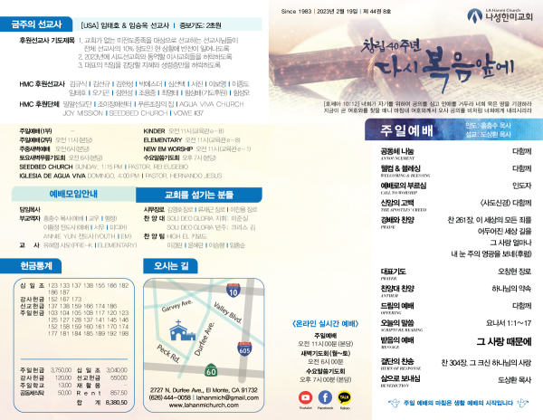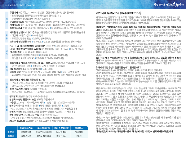 2023년 2월 19일 페이지 정보 작성자 나성한미교회 댓글 0건 조회 3,079회 작성일 23-02-18 08:36 목록 본문 이전글2023년 2월 26일 23.02.25 다음글2023년 2월 12일 23.02.11 댓글 0 댓글목록 등록된 댓글이 없습니다. 목록