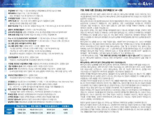 2023년 1월 15일 페이지 정보 작성자 나성한미교회 댓글 0건 조회 3,153회 작성일 23-01-14 10:29 목록 본문 이전글2023년 1월 22일 23.01.21 다음글2023년 1월 8일 23.01.07 댓글 0 댓글목록 등록된 댓글이 없습니다. 목록