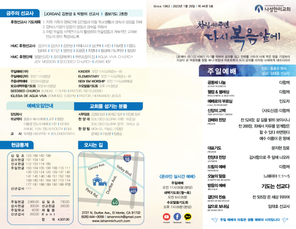 2023년 1월 29일 페이지 정보 작성자 나성한미교회 댓글 0건 조회 3,099회 작성일 23-01-28 09:12 목록 본문 이전글2023년 2월 5일 23.02.08 다음글2023년 1월 22일 23.01.21 댓글 0 댓글목록 등록된 댓글이 없습니다. 목록