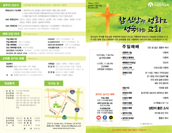 2022년 12월 25일 페이지 정보 작성자 나성한미교회 댓글 0건 조회 2,450회 작성일 22-12-24 16:36 목록 본문 이전글2023년 1월 1일 23.01.04 다음글2022년 12월 18일 22.12.16 댓글 0 댓글목록 등록된 댓글이 없습니다. 목록
