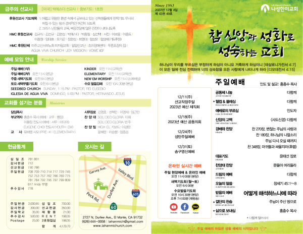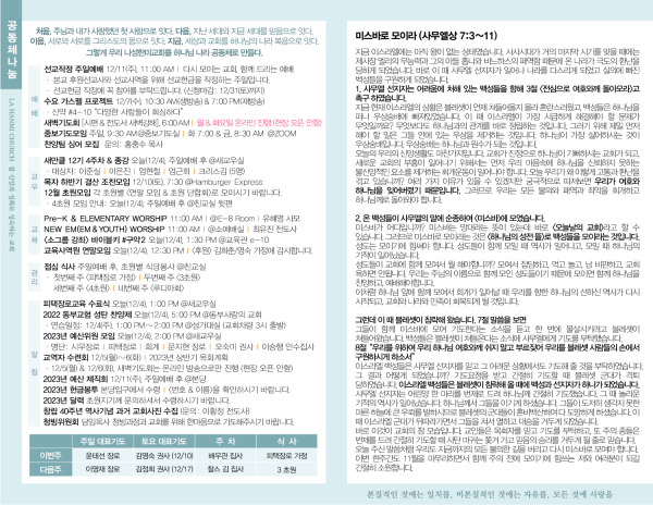 2022년 12월 4일 페이지 정보 작성자 나성한미교회 댓글 0건 조회 2,427회 작성일 22-12-03 11:28 목록 본문 이전글2022년 12월 11일 22.12.16 다음글2022년 11월 27일 22.11.26 댓글 0 댓글목록 등록된 댓글이 없습니다. 목록