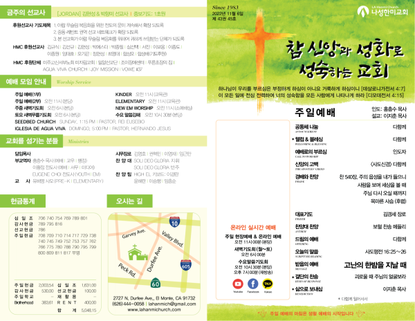 2022년 11월 6일 페이지 정보 작성자 나성한미교회 댓글 0건 조회 2,442회 작성일 22-11-05 09:28 목록 본문 이전글2022년 11월 13일 22.11.12 다음글2022년 10월 30일 22.10.29 댓글 0 댓글목록 등록된 댓글이 없습니다. 목록