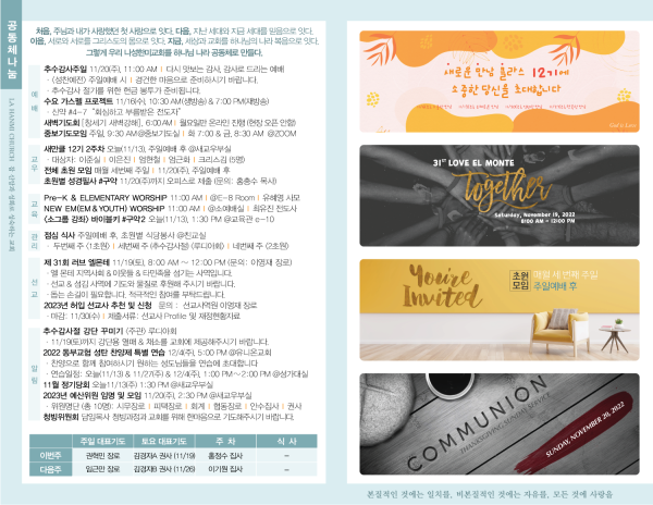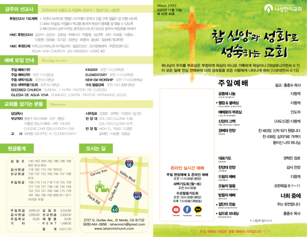 2022년 11월 13일 페이지 정보 작성자 나성한미교회 댓글 0건 조회 3,128회 작성일 22-11-12 08:43 목록 본문 이전글2022년 11월 20일 22.11.20 다음글2022년 11월 6일 22.11.05 댓글 0 댓글목록 등록된 댓글이 없습니다. 목록
