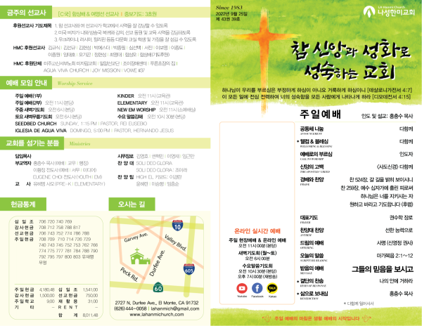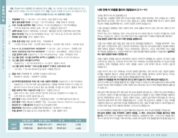 2022년 9월 25일 페이지 정보 작성자 나성한미교회 댓글 0건 조회 2,299회 작성일 22-09-24 08:30 목록 본문 이전글2022년 10월 2일 22.10.07 다음글2022년 9월 18일 22.09.17 댓글 0 댓글목록 등록된 댓글이 없습니다. 목록