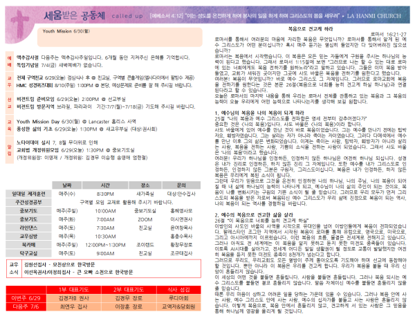 20250629 주보 페이지 정보 작성자 나성한미교회 댓글 0건 조회 479회 작성일 25-06-29 15:44 목록 본문 20250629 주보 이전글20250706 주보 25.07.06 다음글2025년 6월 22일 주보 25.06.21 댓글 0 댓글목록 등록된 댓글이 없습니다. 목록