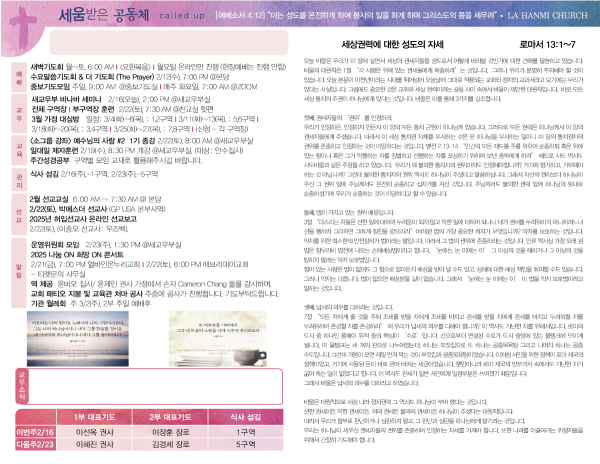 2025년 2월 16일 페이지 정보 작성자 나성한미교회 댓글 0건 조회 1,411회 작성일 25-02-15 15:14 목록 본문 2025년 2월 16일 이전글2025년 2월 23일 25.02.22 다음글2025년 2월 9일 25.02.08 댓글 0 댓글목록 등록된 댓글이 없습니다. 목록