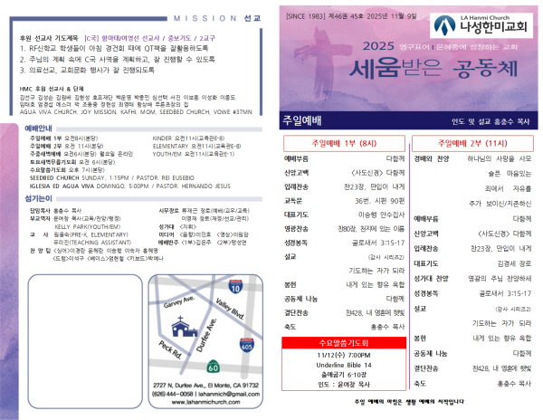 20251109 주보 페이지 정보 작성자 나성한미교회 댓글 0건 조회 186회 작성일 25-11-08 09:46 목록 본문 20251109 주보 이전글20251116 주보 25.11.14 다음글20251102 주보 25.11.04 댓글 0 댓글목록 등록된 댓글이 없습니다. 목록